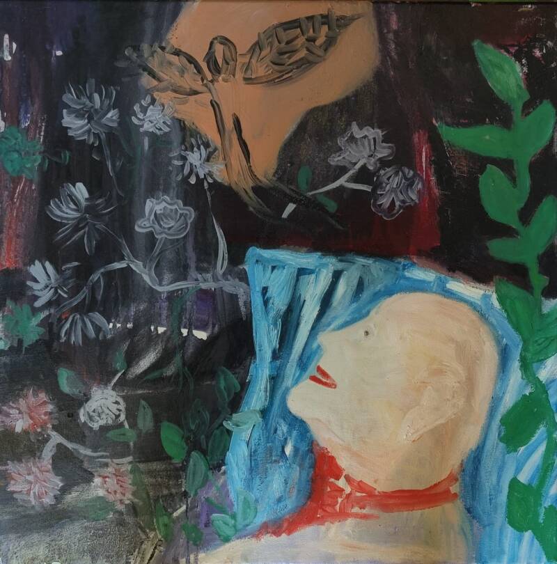 "JC", 2020, Oil and textile on Canvas, 40 cm